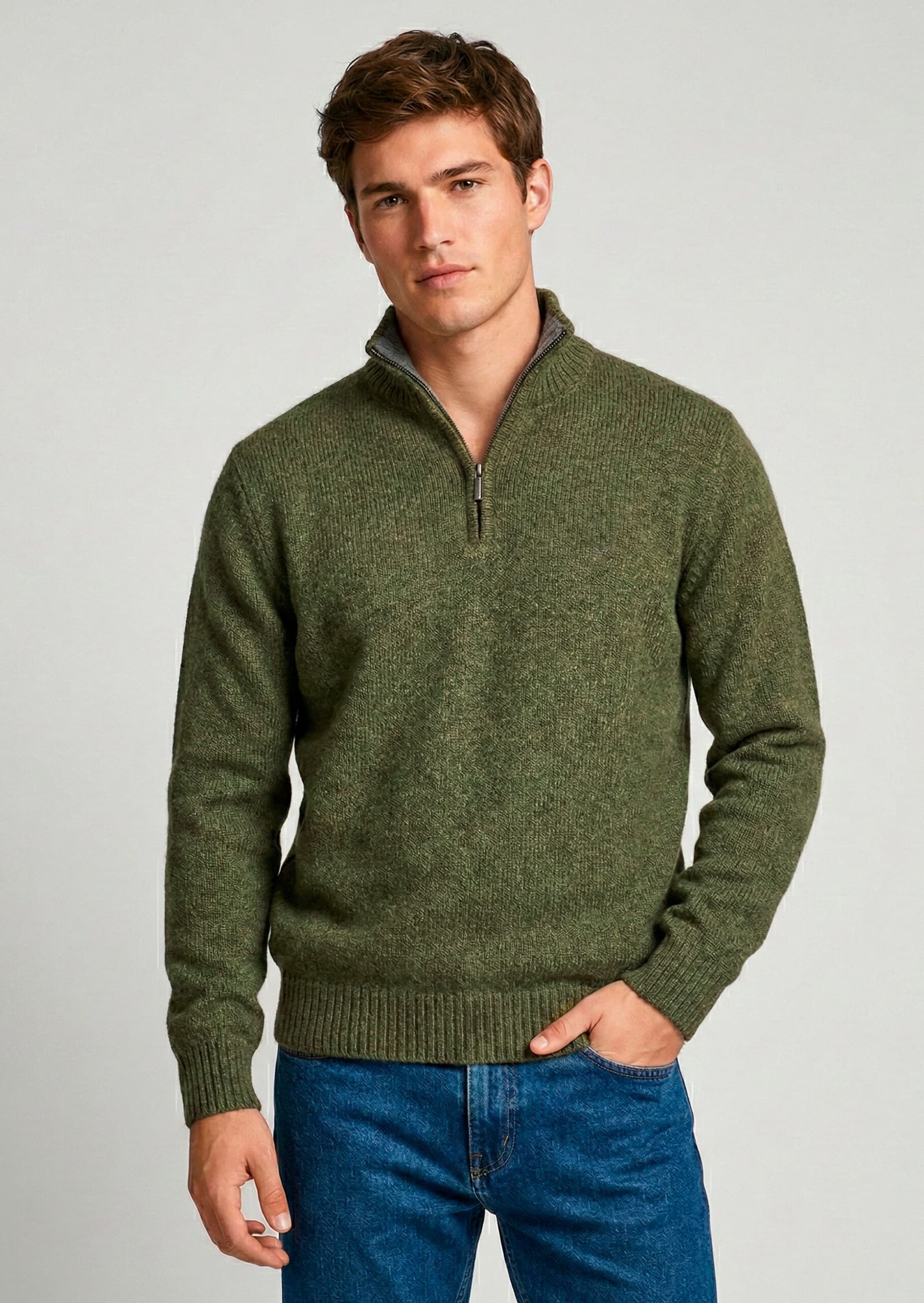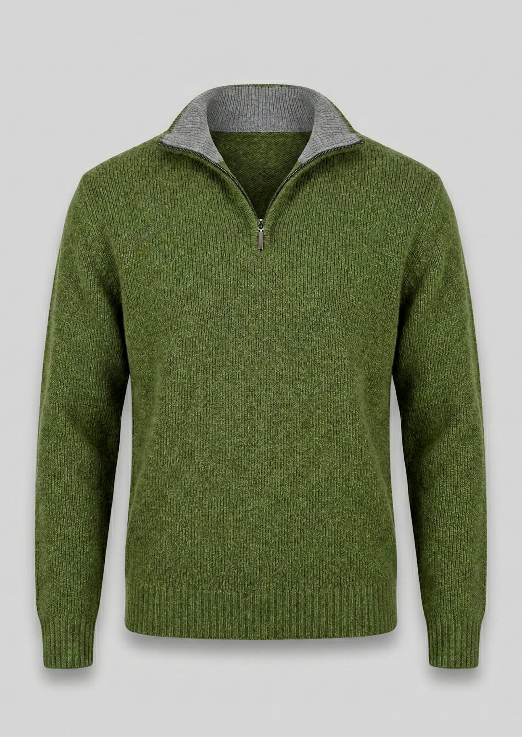 The Nicolás Classic Half-Zip Sweater is a fine-gauge knit pullover featuring a structured ribbed texture and a functional quarter-zip front closure with metal zipper detail. Designed with a high stand collar and contrast inner neck lining, this sweater combines modern tailoring with timeless knit construction.