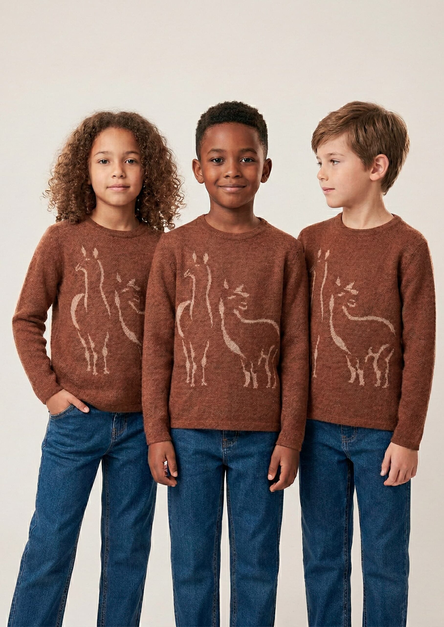 The Thomas Kids Alpaca Motif Sweater is a fine-gauge knit crewneck featuring an engineered alpaca silhouette design integrated into the front panel. Designed with ribbed neckline, cuffs, and hem, this sweater provides structural definition and long-lasting shape retention.