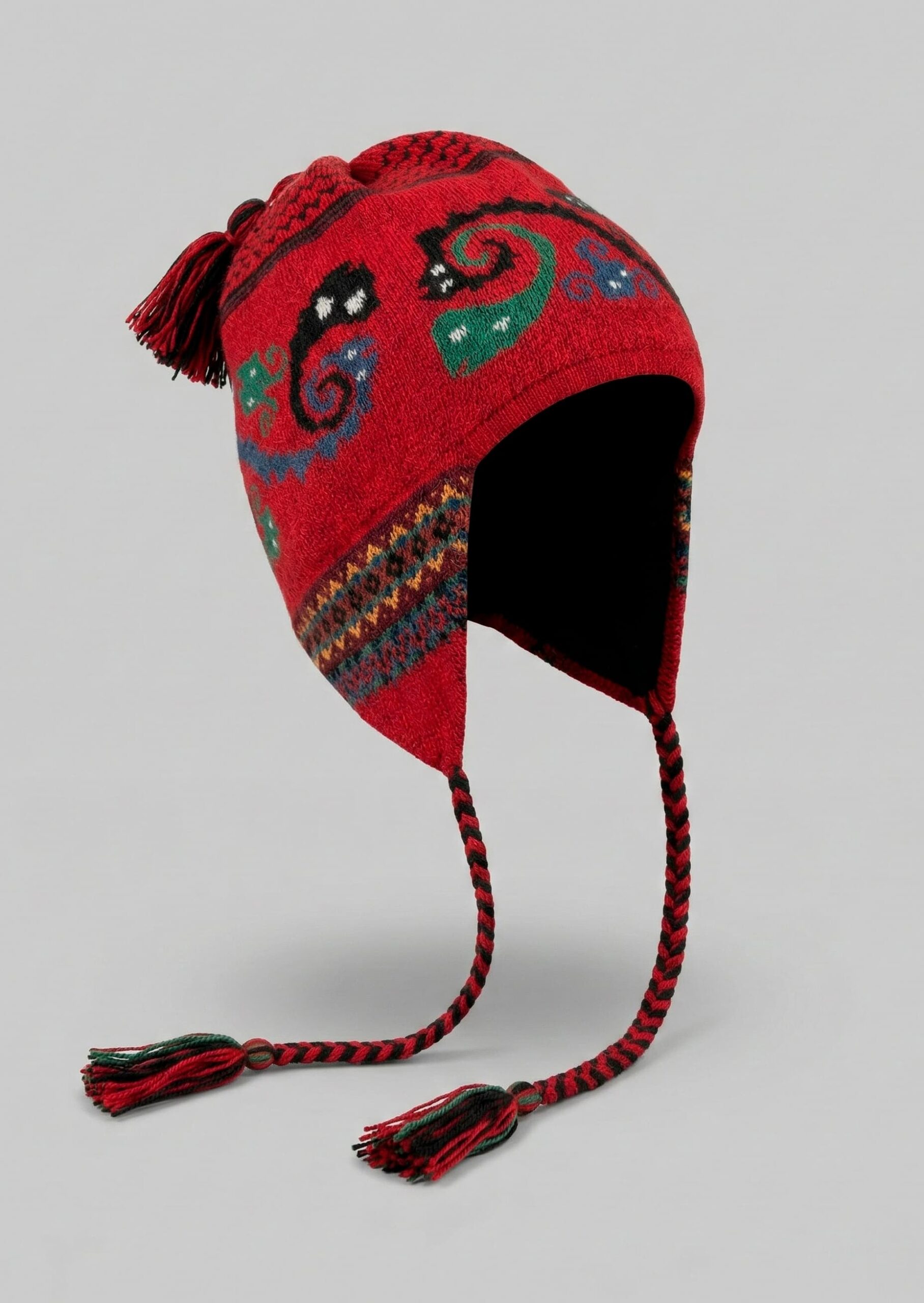The Valeria Andean Chullo Alpaca Hat is a traditional earflap knit cap featuring jacquard Andean-inspired motifs, braided tassel ties, and a hand-finished pom-pom crown. Engineered with extended ear coverage for enhanced thermal protection, this hat combines heritage craftsmanship with functional cold-weather performance.